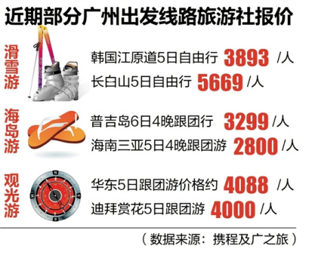 數(shù)據(jù)顯示,越來越多的出境游線路和國內(nèi)游價格相差無幾,不少線路更是“平到笑”。比如,羊城晚報(bào)記者根據(jù)攜程及廣之旅報(bào)價發(fā)現(xiàn),近期一些廣州出發(fā)到韓國滑雪自由行5日價格為3893元,而到長白山滑雪5日行的價格為5669元;廣州到三亞與到泰國普吉島海島游自由行價格均為3000元左右;廣州到迪拜5日賞花游跟團(tuán)游4000元,廣州到華東5日跟團(tuán)游4088元;廣州到越南、柬埔寨出境線路跟團(tuán)游普遍只需兩三千元,低過不少國內(nèi)游線路。