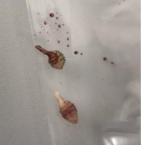 一個禮拜后,顧小姐回到國內(nèi),但是小腿上的三個疹塊一直沒有消退,瘙癢又開始頻頻發(fā)作。顧小姐輾轉(zhuǎn)了上海多家醫(yī)院治療,始終不見好轉(zhuǎn)。4月初,顧小姐發(fā)現(xiàn)小腿上的一個疹塊突然破了,后來竟然從潰破的皮膚里拔出了一條小蟲的尸體。