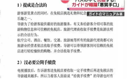 里面寫到:“提成是合法的”。在日本,導(dǎo)游要求獲得提成是違法的,因此該免稅店聲稱,免稅店自發(fā)支付就不屬于觸犯法律。