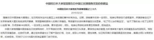 事實上,在2016年2月,中國駐日本大使館就以“中國駐日本大使館提醒在日中國公民謹慎購買高價保健品”為題,提醒大家。