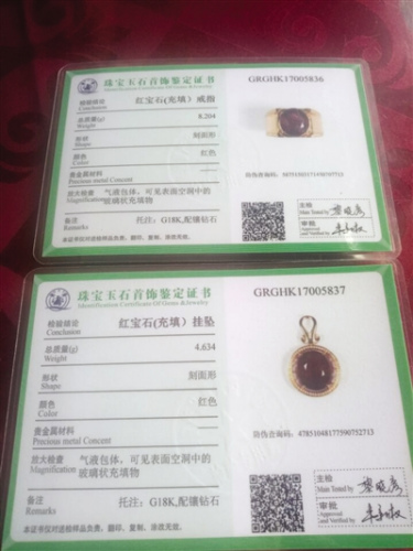 所購買紅寶石戒指和吊墜經(jīng)鑒定含玻璃狀充填物