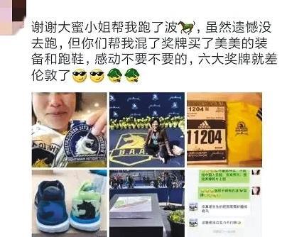 就在波馬結(jié)束后不久,有網(wǎng)友爆料,一位中國(guó)女性跑者在朋友圈里炫耀替跑,“謝謝大蜜小姐幫我跑了波馬,雖然遺憾沒(méi)去跑,但你們幫我混了獎(jiǎng)牌,買(mǎi)了美美的裝備和跑鞋……”這一替跑行為引發(fā)眾多跑者聲討。