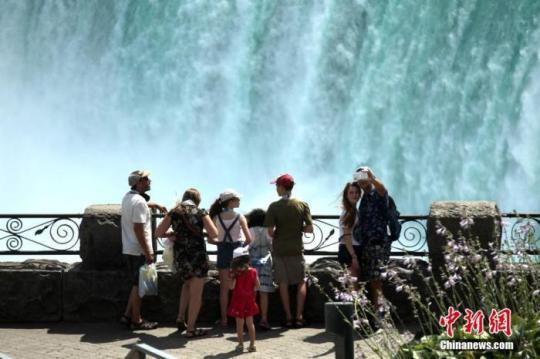 當?shù)貢r間7月29日,游客在加拿大、美國交界處的著名景點尼亞加拉大瀑布群加拿大一側(cè)觀賞瀑布壯觀景色。隨著經(jīng)濟逐步重啟,受到新冠疫情重挫的尼亞加拉旅游業(yè)正迎來復蘇。 中新社記者 余瑞冬 攝