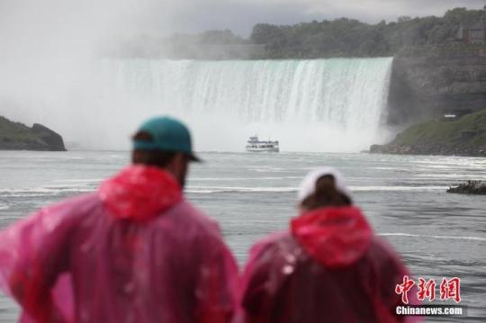 當?shù)貢r間7月29日,加拿大游客乘船游覽加拿大、美國交界處的著名景點尼亞加拉大瀑布。中新社記者 余瑞冬 攝