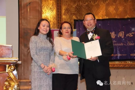 當晚,中國駐多倫多副總領事徐偉和華助中心全體理事成員合影留念。多倫多華助中心理事會主席鄭永麟,副主席吳雨青為贊助頒發(fā)感謝狀。約克區(qū)警察總長Eric Jolliffe 在鄭永麟主席倍同下向在場的華助中心義工代表頒發(fā)了義工感謝狀。