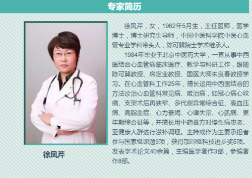 2、徐鳳芹 中國中醫(yī)科學(xué)院中醫(yī)心血管專業(yè)學(xué)科帶頭人、博導(dǎo)