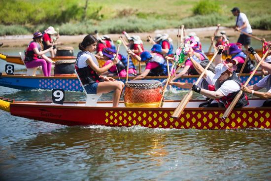 入夏的雅昆河碧水倒映著藍天白云,格外美麗,300米長的賽道兩岸聚集了近千名觀眾。上午9點起,編為混合組、婦女組和青少年組三個組別的22支龍舟隨著振奮的鼓點劃破水面,從丹尼爾賽艇中心港口向比賽起點進發(fā)。他們當中,有來自北方加利利湖的基布茲(集體農(nóng)場)龍舟隊,魏茲曼科學院博士龍舟隊,丹尼爾俱樂部少年龍舟隊,“熊貓迷”龍舟隊等常規(guī)隊伍,也有特拉維夫盲人協(xié)會的龍舟隊,以色列醫(yī)療康復龍舟隊等特殊的龍舟隊。曾帶領以色列賽艇隊參加北京2008年奧運會和殘奧會的以色列賽艇聯(lián)合會主席埃特恩高舉發(fā)令槍,正式揭開了龍舟競渡的戰(zhàn)幕。