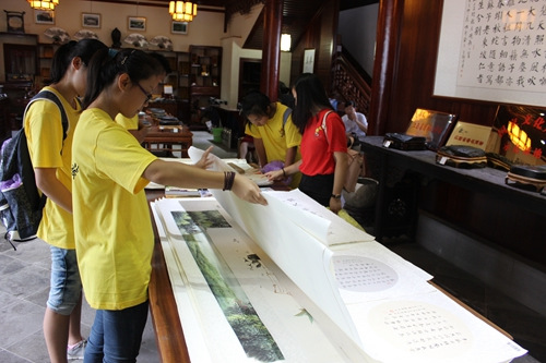 開營儀式結(jié)束后,營員們興致勃勃地走進文化圣殿――婺源熹園。他們在朱緋塘畔瞻仰了朱熹雕像,在朱熹親手種植的樹下緬懷圣人遺蹤。隨后他們還興致勃勃地觀看了中國四大名硯――歙硯的制作過程。