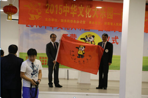 隨后,郝利軍副主任將中華文化大樂園營旗授予麻卓民董事長并互贈紀(jì)念品。