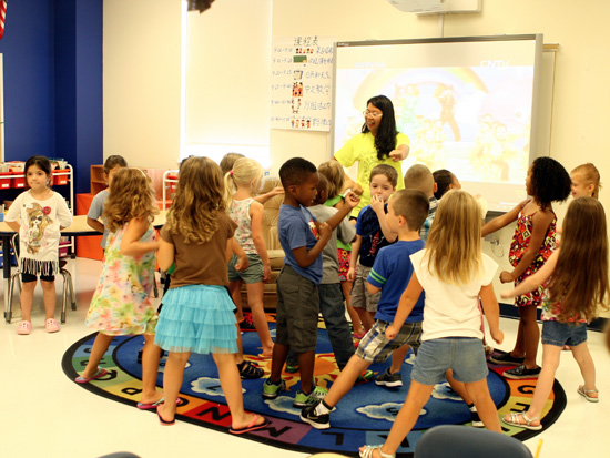 夏令營以年級區(qū)分不同主題,采用沉浸式教育方法,即老師只講中文,以中文故事、文化體驗(yàn)、手工小站和音樂律動(dòng)等多種形式,在寓教于樂的同時(shí)也為學(xué)生提供良好的模擬母語的學(xué)習(xí)環(huán)境。閉營儀式上,孩子們用中文進(jìn)行了故事表演及詩歌朗誦,演唱了《問候歌》、《春曉》、《猴哥猴哥》等膾炙人口的中國兒歌,并表演了舞龍、功夫舞、數(shù)字操等節(jié)目,流利的口語贏得現(xiàn)場觀眾陣陣掌聲。