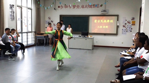 整個閉營晚會節(jié)目精彩紛呈。營員們載歌載舞,精心準備的節(jié)目既呈現(xiàn)了自己國家獨特的民族色彩和文化,也展示了在北京這段時間里的學(xué)習(xí)成果。他們用歌聲表達對文化營老師的感激,用舞蹈抒發(fā)對中華文化的喜愛。晚會中還穿插了營員們非常喜愛的小游戲。參加游戲的營員們充分發(fā)揮協(xié)作精神,他們的幽默動作和表情讓大家不禁開懷大笑。