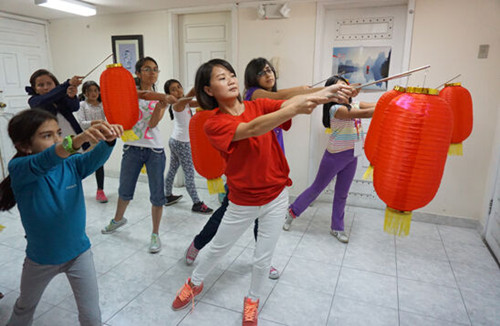 中國(guó)僑網(wǎng)8月25日電 據(jù)中國(guó)華文教育網(wǎng)站消息,8月19日是2015年中華文化大樂(lè)園厄瓜多爾基多營(yíng)開營(yíng)的第三天,民族舞蹈課進(jìn)入編排舞臺(tái)造型階段。針對(duì)選修這門課的營(yíng)員年齡偏小的情況,指導(dǎo)老師選擇了《燈籠舞》作為主教課程。燈籠舞造型紅火靚麗,融入了中國(guó)民族舞蹈技法,易于兒童掌握練習(xí)。
