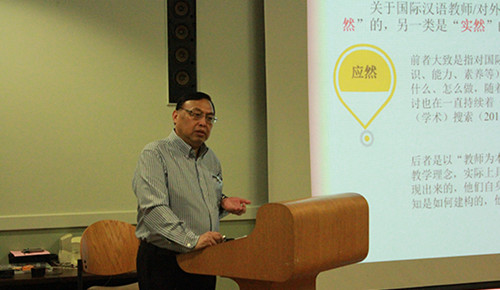 吳勇毅教授的講座主要圍繞第二語言教師的職業(yè)發(fā)展展開,他還比較了不同認知風格的漢語教師在課堂教學策略運用上的差異,并提出教師應該充分發(fā)揮自己的認知風格和特點,去建構屬于自己的、個性化的教學實踐理論與方法。潘一禾教授則以大量案例分析了中西思維模式的主要差異,提出在教學中要注意語言背后的文化差異性,在跨文化交流中要有文化自覺意識。學員們也分享了自己在教學中碰到的跨文化交流問題,并展開熱烈討論。