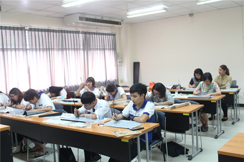 國(guó)畫(huà)課上,以古典音樂(lè)為背景,以墨香為氛圍,學(xué)員們專注學(xué)習(xí),一片片生機(jī)勃勃的竹葉在毛筆下舒展開(kāi)來(lái)。當(dāng)被問(wèn)及前來(lái)學(xué)習(xí)國(guó)畫(huà)的緣由時(shí),每個(gè)人給出了自己的回答。人文專業(yè)學(xué)生要由此進(jìn)一步體會(huì)中國(guó)文化精髓。一位東方大學(xué)的教師老師自幼喜愛(ài)藝術(shù),一直渴望學(xué)習(xí)中國(guó)繪畫(huà)技巧。來(lái)自班善周邊的兩位退休老人希望通過(guò)國(guó)畫(huà)學(xué)習(xí)修身養(yǎng)性,使自身性格更加平和。其中甚至有一位老先生自羅勇府驅(qū)車兩小時(shí)來(lái)此學(xué)習(xí),那份對(duì)中國(guó)文化的喜愛(ài)令人感嘆:“發(fā)憤忘食,樂(lè)以忘憂,不知老之將至?!?/p>