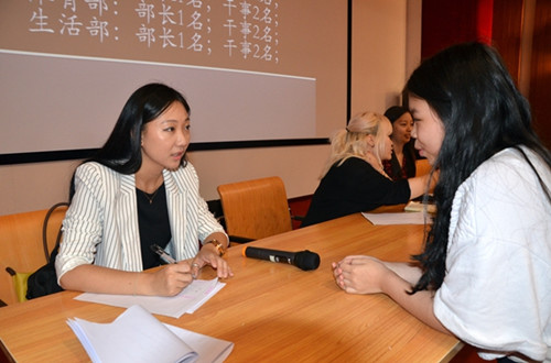 學(xué)管會(huì)新一屆會(huì)長及副會(huì)長號(hào)召新生報(bào)名加入學(xué)管會(huì),以面試的形式簡單了解新生的特長及愛好。