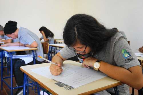 中國僑網(wǎng)10月20日電 據(jù)巴西《南美僑報(bào)》報(bào)道,10月17日,在巴西HSK考試的歷史上是個(gè)特殊的日子。巴西首場針對(duì)中學(xué)生、考點(diǎn)設(shè)在中學(xué)教室的專場考試在里約州葡中雙語中學(xué)如期進(jìn)行。盡管當(dāng)天里約氣溫高達(dá)40度,但29名同學(xué)還是滿懷期待地認(rèn)真參加了自己人生中HSK 考試首秀。
