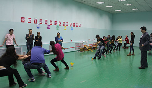 此次運(yùn)動(dòng)會(huì)設(shè)有筷子夾扁豆、踢毽子、抖空竹、跳繩、運(yùn)球答題等5個(gè)單人項(xiàng)目,拔河、跳大繩、乒乓球單雙打比賽等3個(gè)團(tuán)體項(xiàng)目。這些項(xiàng)目參與性和趣味性兼具,將中文文化與游戲結(jié)合在一起,令學(xué)生們?cè)跉g樂(lè)輕松的氛圍中了解到中國(guó)文化。運(yùn)動(dòng)會(huì)結(jié)束后,中方院長(zhǎng)吐?tīng)栠d拜·達(dá)那別克為獲獎(jiǎng)選手頒獎(jiǎng)。(馬依楓)