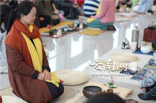 茶會(huì)上,青年學(xué)生、特邀嘉賓們身著中式茶道服,盡顯中華文化的風(fēng)韻,現(xiàn)場(chǎng)還有來(lái)自澳洲悉尼的愛(ài)茶人士們精心設(shè)計(jì)布置的40余組精美茶席。落葉、菊花等飾物的裝點(diǎn),頗有秋日之趣。來(lái)自于全國(guó)各地的400余位愛(ài)茶者相聚春城,與參加夏令營(yíng)的同學(xué)們?cè)谕砬飯@林里吃茶、賞花、聽(tīng)琴、作畫,充分展示中華茶文化的魅力。(張蕊)