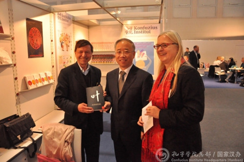 為期一周的書展期間,法蘭克??自貉?qǐng)維也納孔院外方院長李夏德主講了“文學(xué)——通往中國的大門”,暢談文學(xué)作為媒介在中西方對(duì)話方面的貢獻(xiàn),并推廣維也納孔院推出的8卷本“當(dāng)代中國小說系列”。當(dāng)日,李夏德院長就“漢語學(xué)習(xí)和漢語在全球范圍內(nèi)影響力的日益上升”進(jìn)行了第二講,并介紹自己參與編寫的漢語教材《中國之門》。