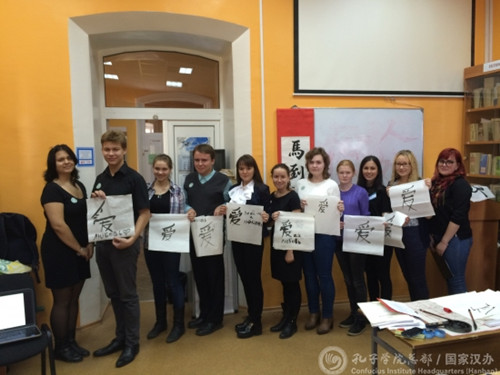 俄羅斯梁贊大學(xué)孔子學(xué)院開展?jié)h字和書法體驗活動