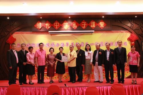 中國僑網(wǎng)11月10日電 據(jù)中國華文教育網(wǎng)站消息,中國國務(wù)院僑辦文化司副司長湯翠英一行四人,日前訪問了泰國合艾市國光慈善中學(xué)、陶華教育慈善中學(xué)和樹強(qiáng)中學(xué)等學(xué)校,慰問宋卡府僑辦外派老師,并與泰南各華校校董代表進(jìn)行座談,商討泰南華文教育發(fā)展大計(jì)。