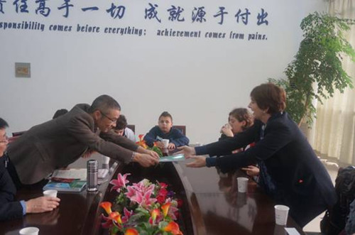 瑞安市外國語學(xué)校為圣托里諾學(xué)校師生一行的到來表示熱烈歡迎,并召開了交流座談會。在座談會上,葉益耿校長致辭說,首先感謝潘世立校長的牽線搭橋,也非常歡迎圣托里諾學(xué)校師生一行來我??疾旖涣鳌V幸鈨蓢际怯兄詈裎幕瘻Y源的國家,兩國的教學(xué)方式也各有特色,因此,希望這次的訪問交流活動能加深雙方學(xué)校在學(xué)習(xí)教育方面的交流,促進(jìn)雙方師生互訪活動,推動雙方學(xué)校建立長久的友誼關(guān)系。之后,外國語學(xué)校特地安排交流團(tuán)一行參觀了學(xué)校全貌、學(xué)生教育情況以及學(xué)校校史館,雙方還進(jìn)行了教學(xué)資料的交換。當(dāng)天中午,意大利師生一行來到瑞安玉海樓等瑞安地標(biāo)景點(diǎn),深入了解瑞安風(fēng)土人情。