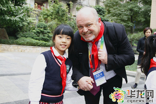 美國校長一踏進校門,樹人小學的學生便熱情打招呼,并為紛紛為他們帶上了紅領巾。在參觀校園時,記者看到不少小朋友都特別友好而主動地牽起了“洋校長”的手,這群“小領隊”還盡職盡責地當起了翻譯,他們特別自豪地介紹了學校的歷史文化以及自己的老師。面對如此可愛的“小助手”,校長們直呼:“真想把你們的孩子帶回美國!”
