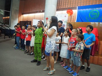漢語教師帶領(lǐng)華僑華人中文學(xué)校學(xué)生表演節(jié)目