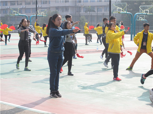 太極扇融合了太極拳與其它武術(shù)、舞蹈的動作,太極與扇的揮舞動作結(jié)合之下,剛?cè)岵?jì)、可攻可守,充滿了飄逸瀟灑的美感與武術(shù)的陽剛威儀,是同時具有觀賞性及藝術(shù)性的健身運動。毛旺老師給營員們做了很好的示范,營員們也在用心的模仿學(xué)習(xí)。