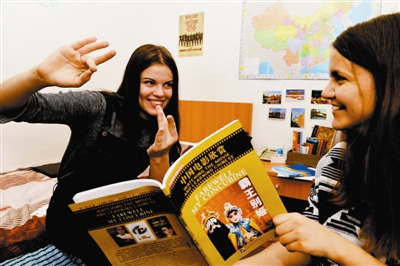 南開大學(xué)靜謐的馬蹄湖畔,時(shí)而傳來(lái)悠揚(yáng)的京劇唱腔,走近發(fā)現(xiàn),在這唱念做打的竟是一位金發(fā)碧眼的外籍美女,她是南開大學(xué)漢語(yǔ)言文學(xué)院的交換生斯涅讓娜,中文名字叫夏初蕾,來(lái)自白俄羅斯的她只有20歲,學(xué)習(xí)中文已經(jīng)兩年?!岸颊f中文很難學(xué),我想挑戰(zhàn)一下!”來(lái)中國(guó)前,通過書籍、報(bào)紙、網(wǎng)絡(luò)、電視、電影,斯涅讓娜了解了許多中國(guó)的歷史與文化。