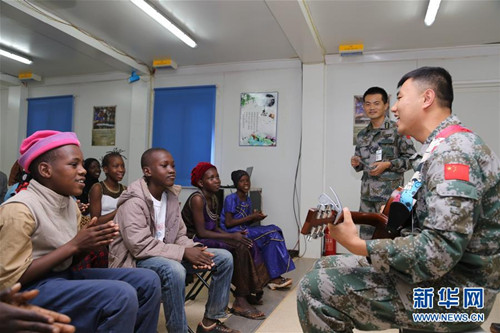 中國(guó)赴馬里維和部隊(duì)教當(dāng)?shù)貎和瘜W(xué)漢語唱中文歌