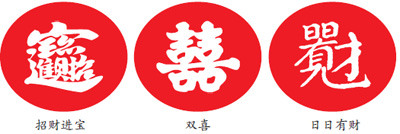 下圖中幾個(gè)筆畫繁瑣、似曾相識(shí)但又叫不上名字的“字”是民俗字。民俗字是民間喜聞樂見的一種書法形式,又叫組合字、團(tuán)結(jié)字等。民俗字不僅具有裝飾性,還表達(dá)著吉祥的含義,是中國(guó)傳統(tǒng)吉祥文化的重要組成部分。在春節(jié)這樣的喜慶節(jié)日中常常作為窗花張貼。如第一張圖中的民俗字,是“招財(cái)進(jìn)寶”4個(gè)字組成,4個(gè)字巧妙地構(gòu)圖,形成一個(gè)具有美感的“新字”,傳達(dá)一種吉祥的寓意。第二張圖是人們最熟悉的雙喜字,在新婚場(chǎng)所貼于新房?jī)?nèi),也設(shè)計(jì)在各種結(jié)婚用品上。兩個(gè)喜字方正對(duì)稱,寓意結(jié)婚男女并肩而行,其中的4個(gè)“口”字寓意“子孫滿堂”。第三張圖“日日有見才(財(cái))”為明朝大才子唐伯虎所創(chuàng),原義勉勵(lì)自己每天要勤奮。后被人們延伸為日日見財(cái),亦通“日日有見財(cái)”、“日日有財(cái)見”。