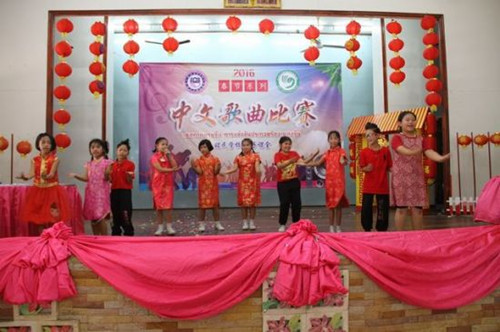 一年級(jí)戊班的許珍珍同學(xué)一首《甜蜜蜜》引起了全校學(xué)生集體大合唱,把現(xiàn)場(chǎng)氛圍推向了高潮。四年級(jí)丁班的小妹同學(xué)之前曾經(jīng)獲得過泰國(guó)泰文歌曲大賽三等獎(jiǎng),此次演唱中文歌曲《酒干倘賣無》更是表現(xiàn)非凡,表演極富感情,贏得了現(xiàn)場(chǎng)觀眾的陣陣掌聲。