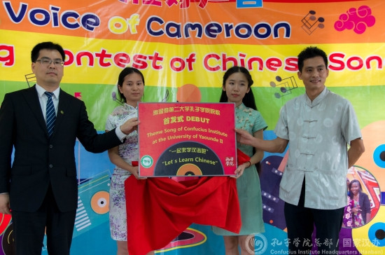 孔院本部學(xué)生大成自彈自唱,并配以現(xiàn)場情景劇,以一曲《親愛的小孩》奪得全場最高分,當(dāng)仁不讓獲得第三屆“喀麥隆好聲音”中文歌曲大賽冠軍。據(jù)了解,大成是孔子學(xué)院四級(jí)班的學(xué)生,同時(shí)也是喀麥隆小有名氣的歌星,前段時(shí)間他和雅二大孔子學(xué)院老師合作,創(chuàng)作了一首中法英三語歌曲《一起來學(xué)漢語吧》。比賽間隙大成還現(xiàn)場演唱了該歌曲,中方院長余國養(yǎng)代表雅二大孔院宣布將該歌曲定為院歌,中國駐喀使館政務(wù)參贊孫偉為院歌首發(fā)揭牌。