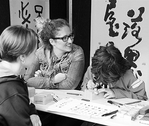 針對處在學習外語最佳年齡段的小學生,德國各地的孔子學院紛紛設(shè)立“漢語體驗日”,邀請德國小朋友通過有趣的活動感受漢語。從學習用毛筆寫自己的中文名字開始,許多德國小朋友慢慢喜歡上了方塊字。