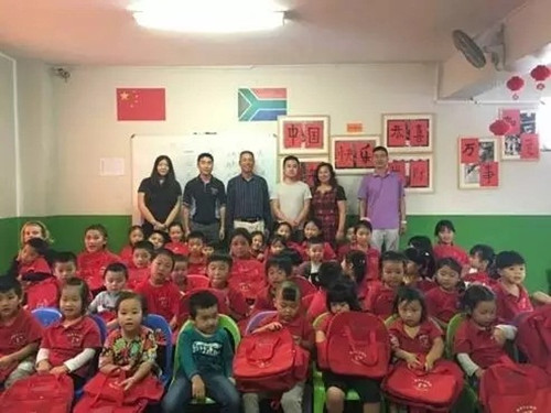 愛(ài)心人士訪(fǎng)南非樹(shù)德書(shū)院 為華人學(xué)生購(gòu)置書(shū)包