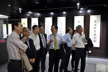 隨后,海外僑社代表在任啟亮和周虹的陪同下,參觀了學(xué)院主教學(xué)樓大廳文化墻、學(xué)生教室、圖書館、博物館、游泳館、體育館、餐廳等場(chǎng)所和設(shè)施。參觀過程中,海外僑社代表不時(shí)地在博物館展品前駐足仔細(xì)品評(píng)畫作筆法,在圖書館向華裔學(xué)生了解他們?cè)诒本┤A文學(xué)院學(xué)習(xí)的感悟和收獲,在體育館興致勃勃地與正在鍛煉的學(xué)生合影。