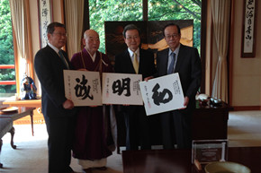出席活動(dòng)前,程永華還與福田康夫、柳興洙等一同訪問了日本年度漢字發(fā)表地清水寺。