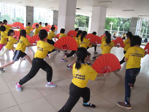 武術(shù)功夫扇講究動作的流暢性,蔡欣宜老師在指導(dǎo)營員們時也格外注重訓(xùn)練他們動作的連貫和整齊。營員們分組練習(xí),互相學(xué)習(xí),很快就揮舞出了武術(shù)功夫扇的基本招式,整齊劃一,場面十分壯觀。