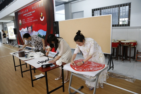 本次大樂(lè)園是北京華文學(xué)院第一次承辦中國(guó)海外交流協(xié)會(huì)的大樂(lè)園項(xiàng)目,學(xué)院領(lǐng)導(dǎo)非常重視本次活動(dòng),院長(zhǎng)周虹親自組建了籌備組,學(xué)院多個(gè)部門(mén)在該團(tuán)出發(fā)前做了大量細(xì)致認(rèn)真的準(zhǔn)備工作,保證了大樂(lè)園活動(dòng)的順利成行。大樂(lè)園教師隊(duì)伍中除了北京華文學(xué)院的八位老師外,還邀請(qǐng)了來(lái)自石家莊外國(guó)語(yǔ)學(xué)校、石家莊幼兒師范高等專(zhuān)科學(xué)校的六位教師,共同為營(yíng)員們開(kāi)設(shè)中華文化、中國(guó)地理、中國(guó)歷史、朗誦、聲樂(lè)、書(shū)法、國(guó)畫(huà)、手工、舞蹈、武術(shù)等十門(mén)課程。