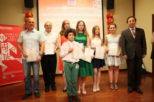 出席活動的嘉賓分別為“讀書月”獲獎的6位選手和漢語班5個級別的34名學(xué)員頒發(fā)了獎品和結(jié)業(yè)證書。漢語班學(xué)員為結(jié)業(yè)典禮精心準(zhǔn)備了匯報演出。(左暉)
