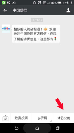 在會話界面底部的自定義菜單中點擊“才藝投票”即可進入投票頁面。