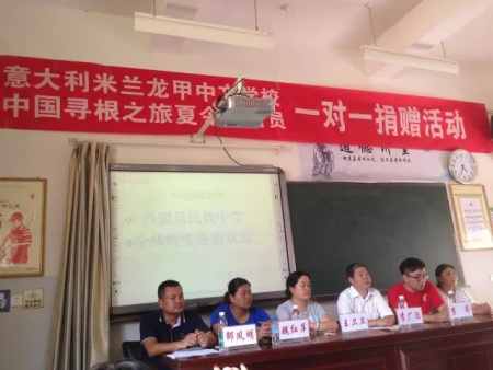 在云南省僑辦、普洱市僑辦及昆明華文學(xué)校的聯(lián)系和幫助下,米蘭龍甲中文學(xué)校組織2016“中國尋根之旅·七彩云南”夏令營的營員走進(jìn)普洱市西盟民族中學(xué),啟動陽光工程“一對一”的捐贈活動,為西盟民族中學(xué)的孩子們捐贈學(xué)習(xí)費用和學(xué)習(xí)用具,讓海外華裔青少年為中國國內(nèi)需要幫助的兄弟姐妹奉獻(xiàn)一份愛心,傳遞一份希望。