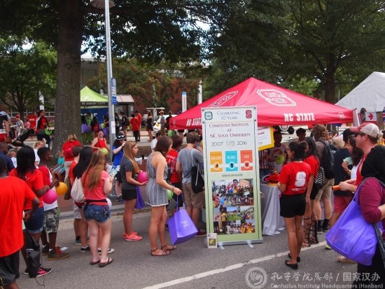 中國僑網(wǎng)8月30日電 據(jù)國家漢辦網(wǎng)站消息,日前,美國北卡羅萊納州立大學(xué)第五屆學(xué)生開學(xué)狂歡節(jié)拉開帷幕。北卡羅萊納州立大學(xué)孔子學(xué)院,組織全體教師和眾多志愿者積極參與活動,推廣中國文化。