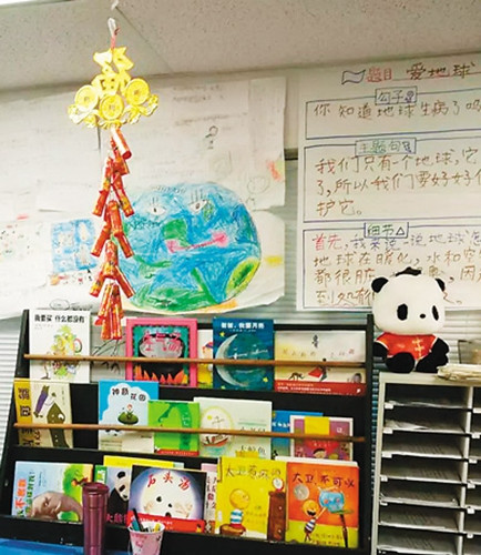 讓教室成為課堂學(xué)習(xí)延伸地帶。美國(guó)加州圣地亞哥河景小學(xué)的沉浸式漢語(yǔ)教學(xué)班的教室就很有特色。學(xué)生學(xué)了“爸爸、媽媽、奶奶”等詞,墻上掛漢語(yǔ)親屬關(guān)系圖;學(xué)過(guò)“紅、綠、黃”,墻上掛顏色詞卡及對(duì)應(yīng)的圖片;學(xué)過(guò)“新年、圣誕節(jié)、元旦”,墻上掛中外主要節(jié)日的名稱(chēng)。此外,還可以?huà)旖煌ㄟ\(yùn)輸工具圖、水果名稱(chēng)圖、蔬菜名稱(chēng)圖……總之,讓漢語(yǔ)學(xué)習(xí)貫徹課堂內(nèi)外,而不僅僅是課堂上的45分鐘。