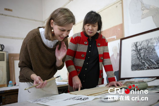 在采訪中,記者們遇到了一位來自俄羅斯的姑娘冉梅,她曾是西北師范大學(xué)美術(shù)系的研究生,專門研究中國(guó)繪畫藝術(shù),2013年畢業(yè)后便從事中國(guó)幼兒美術(shù)教育輔導(dǎo)的工作,會(huì)在教學(xué)中特別強(qiáng)調(diào)中西方文化的差異,加入對(duì)西方藝術(shù)和文化的介紹。冉梅說,她特別希望能夠通過將俄羅斯和中國(guó)的不同文化分別帶入對(duì)方的國(guó)家這種方式,讓兩國(guó)的孩子們從很小的時(shí)候就能相互交流起來,了解不同的文化。冉梅還告訴記者,目前她準(zhǔn)備了一系列關(guān)于絲綢之路的作品,計(jì)劃在中國(guó)和俄羅斯舉辦畫展,促進(jìn)兩國(guó)文化藝術(shù)的交流。
