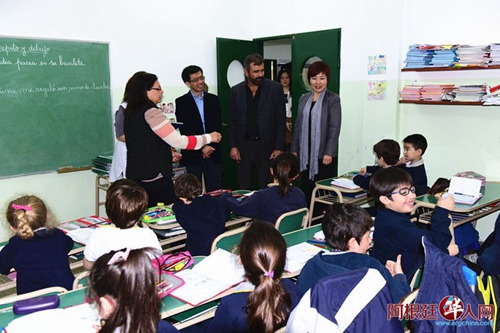 駐阿根廷使館參贊訪中文學(xué)校 鼓勵推動華文教育