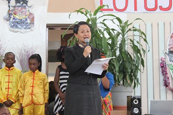 閉幕時,耿海凌致辭祝賀演出成功,表示今年已是第四次觀看中文國際學(xué)校的年度演出。因?yàn)楹⒆觽兠磕甑某錾硌?,年度舞臺劇已經(jīng)成為她最期待的活動之一。她稱贊師生們今年又有新創(chuàng)意,劇目編排將中贊文化元素融入中國古代著名的神話故事,并且古今交匯,演出更呈現(xiàn)了不一樣的精彩,妙趣橫生。三圣母被鎮(zhèn)在非洲特有的面包樹下,沉香從天堂跌落至贊比亞卡富埃國家公園,噶妹變成酋長女兒等,都是其中的出彩段落,引起現(xiàn)場觀眾共鳴。