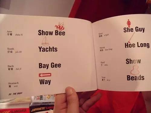 近似讀音法:手臂=Show Bee;膝蓋=She Guy……