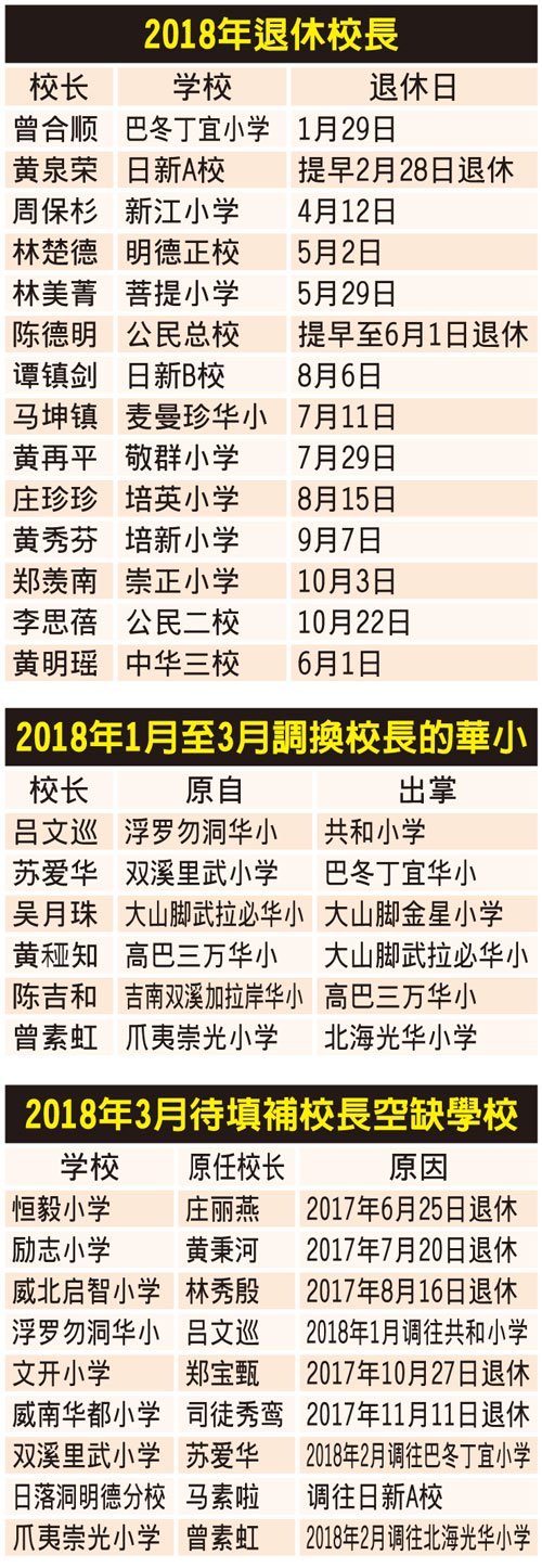 另外,今年第一季度,州內(nèi)有6名華小校長被調(diào)派出掌其他學(xué)校。